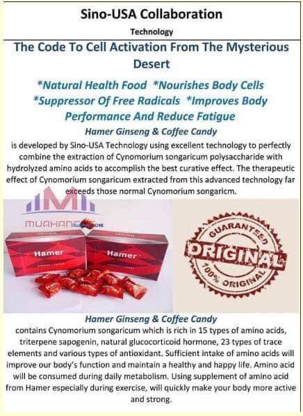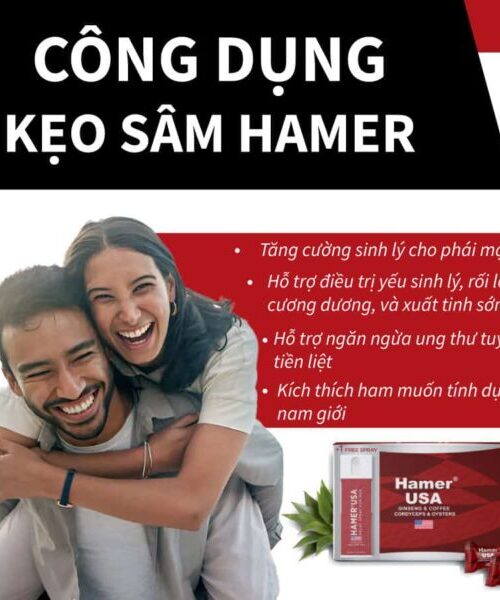 – Hamer giúp cơ thể luôn tràn đầy năng lượng, không có tác dụng phụ và duy trì hiệu quả lâu dài bất chấp tuổi tác. Với người trẻ, Hamer tăng cường sức khỏe mạnh mẽ, còn với người lớn tuổi, sản phẩm hỗ trợ duy trì sự sung mãn, khôi phục sinh lý nam giới hiệu quả.