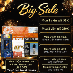 1 hộp Hamer Pro (30 viên) + 1 hộp Hamer Xanh (30 viên) + 1 hộp kẹo A7 cao cấp