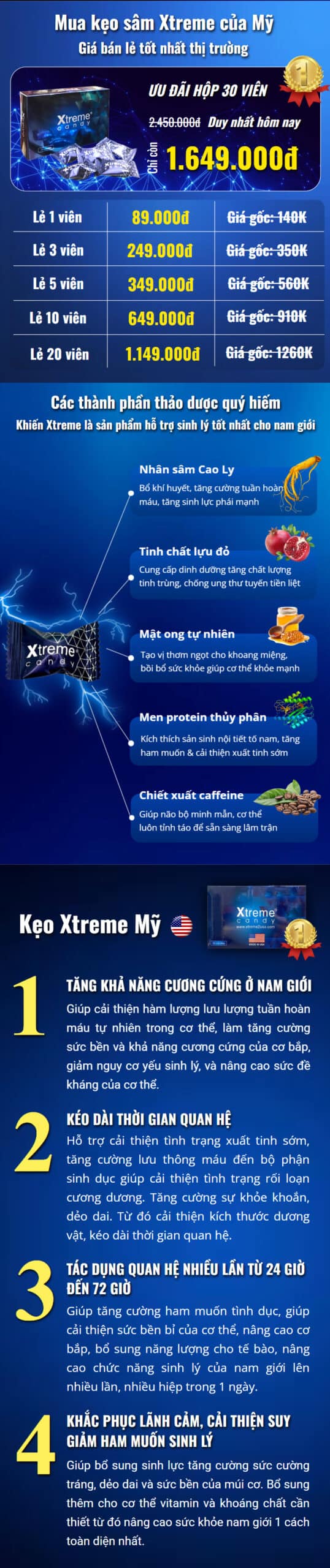 •Thành phần của kẹo Xtreme này được cải tiến nên hiệu quả hơn nhiều, ngậm 1 viên là khác biệt hẳn làm tận hơn 30p
