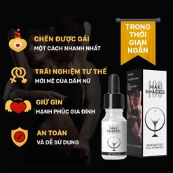 Chỉ với vài giọt nhỏ, Maxshades giúp đánh thức cảm xúc, kích thích ham muốn tự nhiên, khiến cơ thể tự phản ứng một cách nhẹ nhàng mà không gây kích ứng, không mùi, không vị – hoàn toàn khó phát hiện khi pha cùng nước hoặc đồ uống.