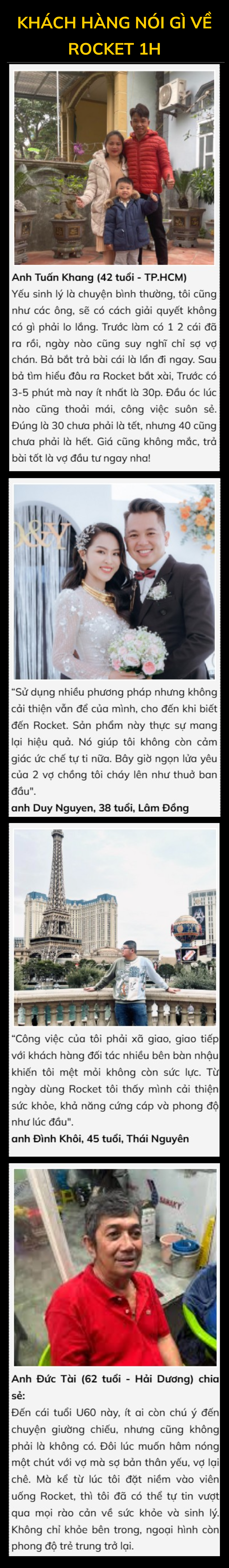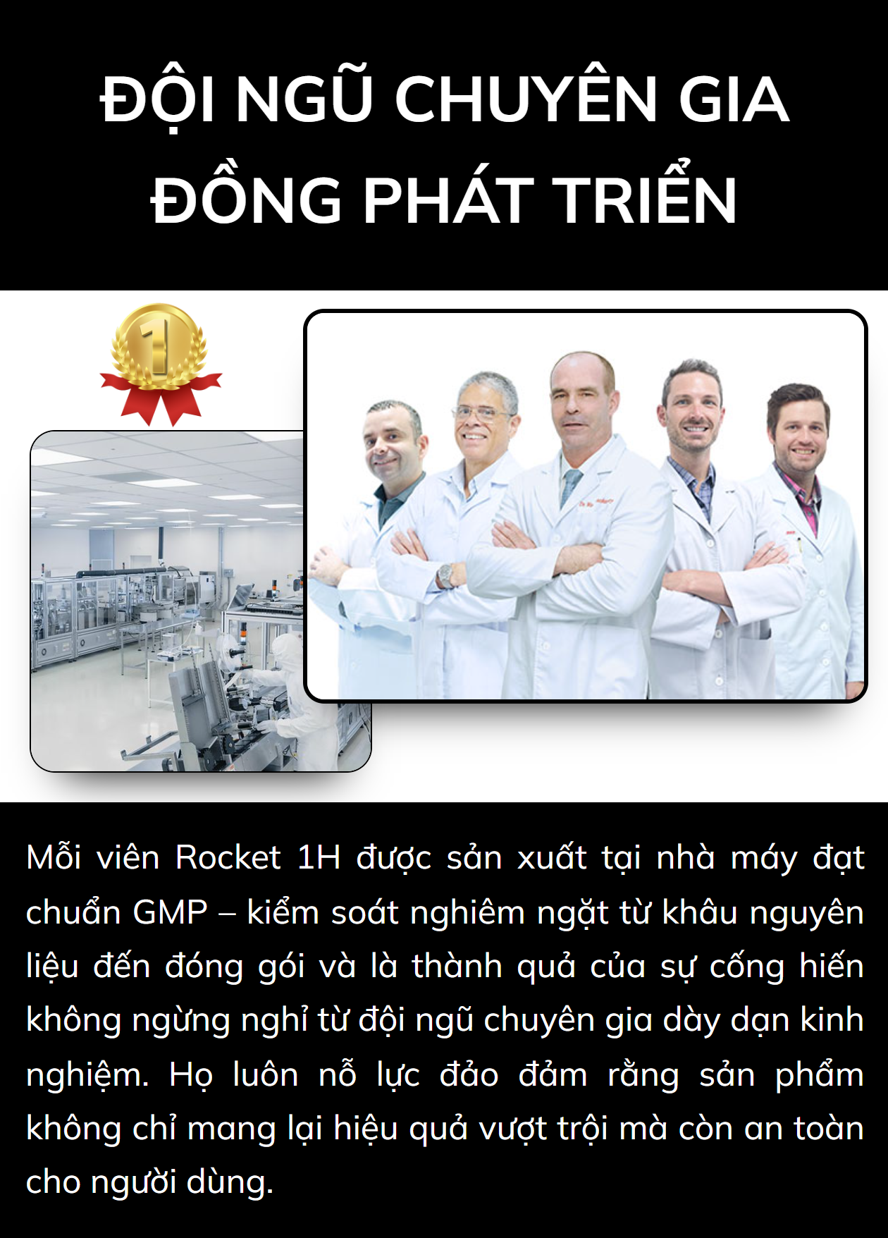 – Rocket 1H là bản nâng cấp được tạo ra từ các thành phần tự nhiên, an toàn và hiệu quả tích cực, hầu như không có tác dụng phụ đối với người sử dụng.