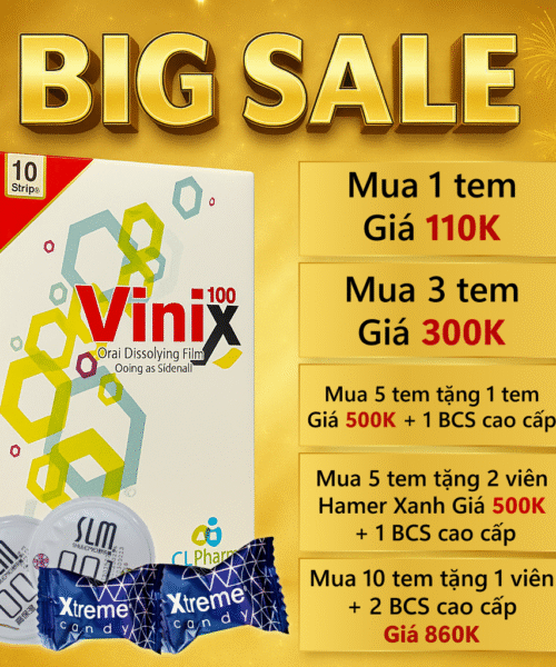 Tem Vinix 100mg Hàn Quốc – sản phẩm hỗ trợ sinh lý nam dạng tem ngậm dưới lưỡi, thẩm thấu nhanh, giúp cải thiện khả năng cương cứng, kéo dài thời gian quan hệ và tăng sự sung mãn cho phái mạnh. Với thiết kế nhỏ gọn, kín đáo, tiện mang theo, Tem Vinix mang lại sự tự tin và bản lĩnh trong mỗi cuộc yêu.