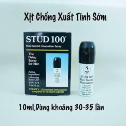 Stud 100 là sản phẩm dạng xịt tiện lợi, được sản xuất tại Anh bởi Pound International Ltd. Thành phần chính là Lidocaine Base USP (9,6%), đã được kiểm định lâm sàng, có tác dụng hỗ trợ kéo dài thời gian quan hệ cho nam giới.